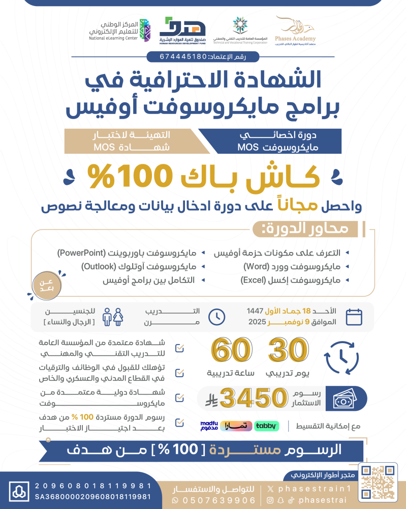 -رسوم الدورة مستردة 100% من هــــدف بـــعد اجــــتيـاز الإختــــبــار .