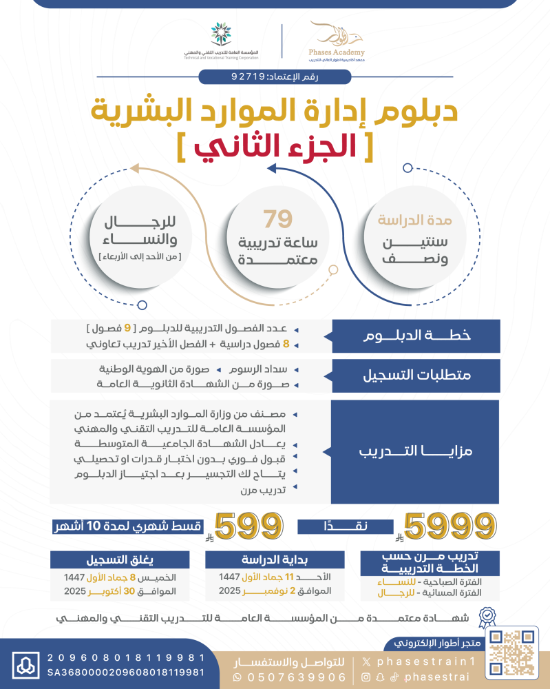 سنتين ونصف =79 ساعة تدريبية معتمدة