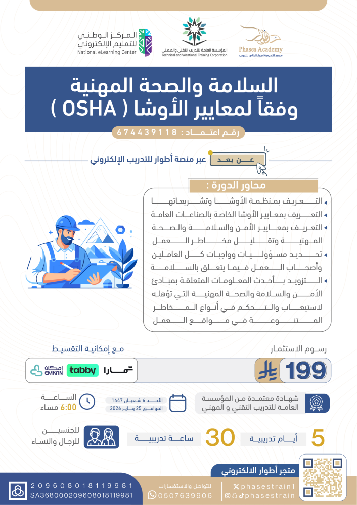 دورة السلامة والصحة المهنية وفقا لمعايير الأوشا
