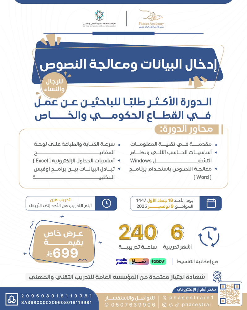 دورة إدخـــــــــــــــــــال البيـــــانـــات ومعــــــالجــــة النــــــصوص "