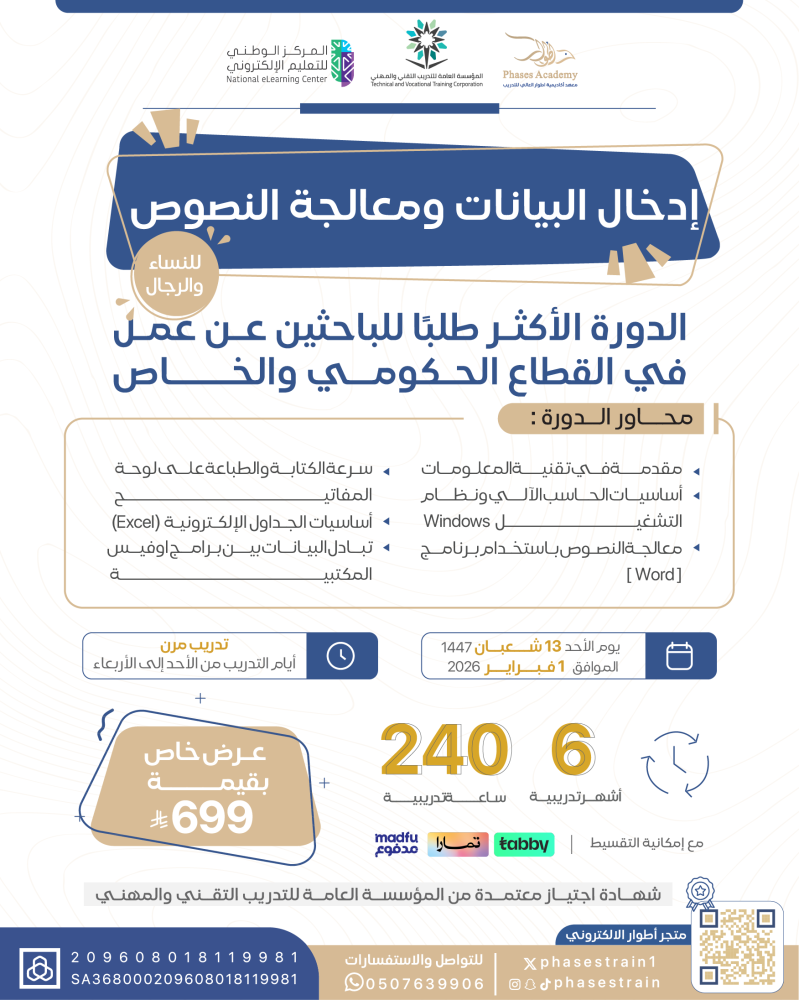 دورة إدخـــــــــــــــــــال البيـــــانـــات ومعــــــالجــــة النــــــصوص "