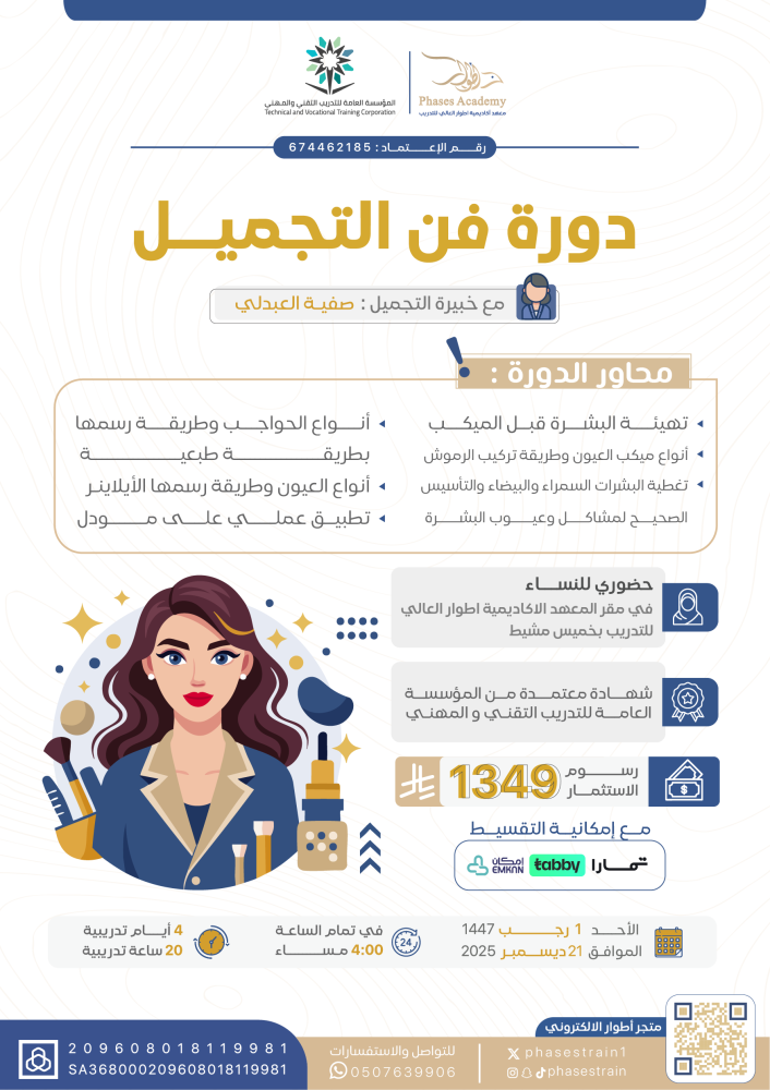 اغتنمي الفرصة الآن واحجزي دورة فن المكياج المعتمدة مع مركز أطوار للتدريب لتصبحي محترفة من اليوم.