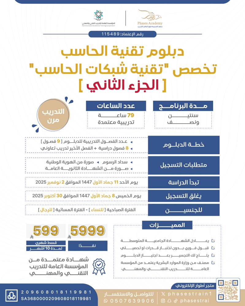 سنتين ونصف =79 ساعة تدريبية معتمدة